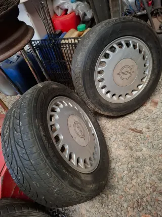 Juego de 4 llantas y ruedas de Opel Kadett GSI. 4x100, neumáticos bastante aprovechables. Recogida en mano.