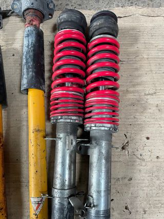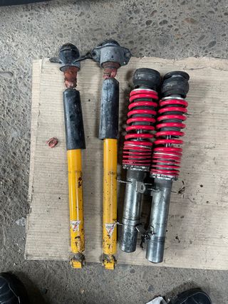 Se venden o se cambia suspensión roscada delantera Ta Technix Redline (modelo superior). Válidas para VW golf mk4, Audi a3 81, SEAT León 1m, Toledo mk2, skoda octavia. La delantera vale para modelos s3, quattro y 4motion también. TENGO OTRA PERFECTA Y COMPLETA EN MI PERFIL Están sin uso prácticamente, y regalo amortiguadores traseros Koni Regulables en dureza. Se cambian por llantas 4x100, 5x100, 5x112 (Mercedes), material de golf mk2, mk3, 190e...