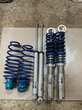 Se vende o se cambia suspensión roscada COMPLETA marca JOM BlueLine (modelo superior) NUEVA. Válidas para VW golf mk4, Audi a3 81, SEAT León 1m, Toledo mk2, skoda octavia. Tengo otra MÁS BARATA en mi perfil. La delantera vale para modelos s3, quattro y 4motion también. Están sin uso prácticamente, 300km a lo sumo. Se cambian por llantas 4x100, 5x100, 5x112 (Mercedes), material de golf mk2, mk3, 190e...