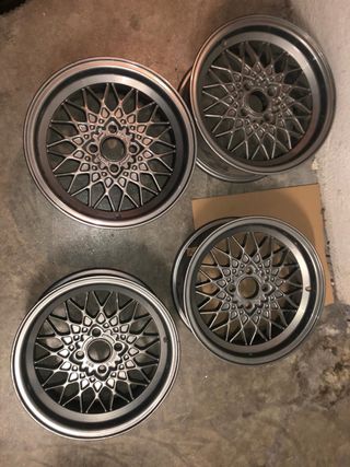 Juego de cuatro llantas BBS RS de 16 pulgadas, con anclaje 5x130, perfectas para Porsche. Están en muy buen estado, tiene miy poco uso, estuvieron muchisimos años almacenadas. - Modelo: BBS RS - Diámetro: 16 pulgadas - Tornillería: 5x130 - 2 RS 012 de 7x16 et23 - 2 RS 013 de 8x16 et11 Se pueden entregar con separadores de doble tornilleria para montar las llantas en coches con buje 4x100 (Vw golf mk1 mk2 gti karman, bmw e30 325i e21 323i) y tambien neumaticos 195/45r16 #porsche 911 930 G