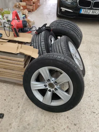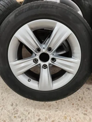 -Juego de llantas originales para BMW. -Gomas nuevas. -Con sensores de presión metálicos. -Estában montadas en un serie 3 del año 2016. Modelo f30 -Medidas 16. -Tornillos 5x120. -Medidas de las gomas en una foto. - Acabado plateado. - Incluye válvula.