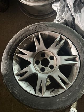 Juego de llantas de aleación de 15 pulgadas, originales de Seat Ibiza modelo 6L. 5x100 Neumaticos 195/55/15 Delanteros marca nexen para cambiar en poco y traseros continental con bastante dibujo a un 70-80% Acepto cambio por 16" o 17" aportando dinero , los neumáticos están en buen estado - Diseño de 5 radios. - Acabado plateado.