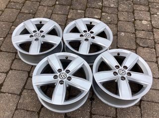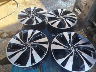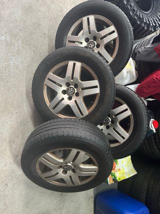 Juego de cuatro llantas de 15 pulgadas con un patrón de pernos de 5x100. - Diseño de 5 radios. - Logo de Volkswagen en el centro. - Compatibles con varios modelos del grupo Vag Están en muy buen estado, sin golpes, ni pierden aire ni nada de nada, se ha pasado ITV con ellas, se venden con los neumáticos todavía aprovechables. No negociable, están en muy buen estado con neumático aprovechable.