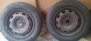 Juego de 4 llantas de hierro con neumáticos en 15 pulgadas 5x100. son originales de leon, Ibiza...