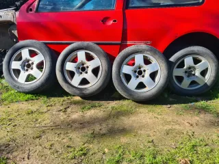 Juego de 4 llantas de 15 pulgadas con patrón de pernos 5x100. Incluyen neumáticos en excelente estado, casi nuevos. - Tamaño de llanta: 15 pulgadas. - Patrón de pernos: 5x100. - Neumáticos: Casi nuevos. Seat Ibiza 3, seat león mk1, golf IV etc