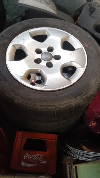 Juego de llantas para Audi A3 modelo 8L. Son en 15 pulgadas con neumaticos dos aprobechables en 195-65R 15 Son 5x100 - Diseño de 5 radios. - Acabado plateado.