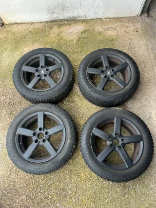 Llantas 18” originales de Audi, negras Tornilleria 5x112; Buje 66.6mm Con unas Hankook con el dibujo practicamente nuevo. apenas tienen rayazos, se puede ver en las fotos que estan perfectas. Llevan unas Hankook ventus prime s1 evo 3 245/40 zr18 detras 5.5mm Y delante recien cambiadas, completamente nuevas en Norauto. Una tiene un toque d una acera, pequeño, se ve en la foto. palabras clave audi vw volskwagen golf cupra seat a4 a5 a6 a7 a8 a3 sline s4 s5 s3 rs3 rs4 rs5 b8 b9 b7 b6 passat polo formentor gti tdi porsche llantas 18” 19” et 20” negro brillo glossy black