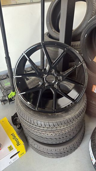 Juego de llantas negras de 19 pulgadas para Cupra Leon, Ateca, formentor, gti, R, A3, A4, Ibiza, Leon . 5x112 - Diseño deportivo. - Acabado brillante. - SOLO LLANTAS -ET 35 quedan a ras de carrocería, no hace falta separador cupra, Audi, skoda, VZ, RS, vrs, SEAT, leon, Rs, formentor