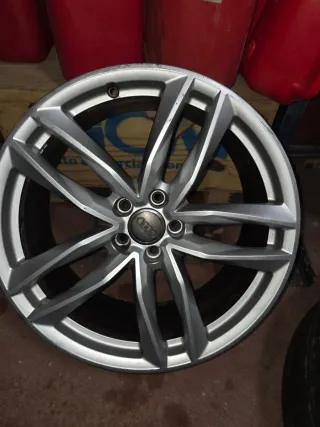 Juego de 5 llantas Audi con medida 5x112. - Diseño deportivo. - Compatibles con varios modelos Audi. Una de ellas esta sin neumatico por un pellizco lateral aparcando