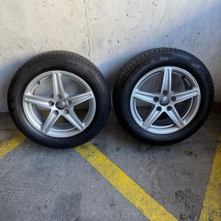 Juego de 4 llantas Audi R16. - Diseño deportivo. - Acabado plateado. - Dos neumáticos apenas usados y los otros dos te aguantan mínimo seis meses más. Las fotos de los neumáticos están hechas de derecha a izquierda. Listas para montar y usar . Fotos por privado y solo si estás realmente interesados precio poco negociable y solo cuando se vean, no respondo a mareantes. ( Un solo neumático nuevo te puede costar más dinero que este lote) *No se incluyen los tornillos.