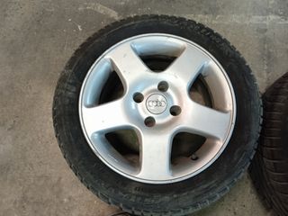 Vendo 4 llantas de aluminio con neumáticos de 15 pulgadas de Audi A3 del año 2003.
