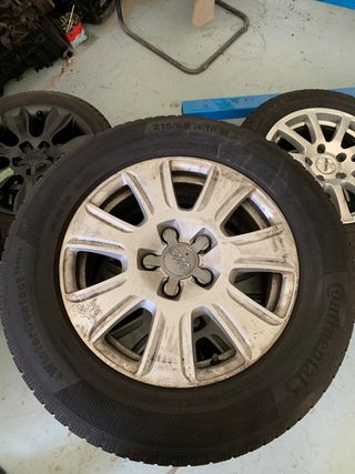 Vendo 4 ruedas originales de Audi. Neumáticos de nieve dos están en buen estado y dos hay que cambiarlasEs una llanta de aleación ligera, de color gris plata. - Llanta de Audi original. - En buen estado. - Color gris plata.