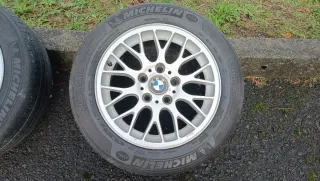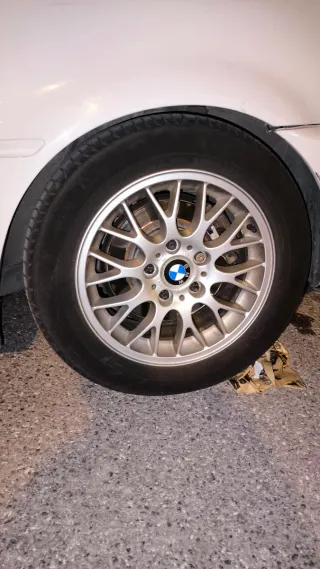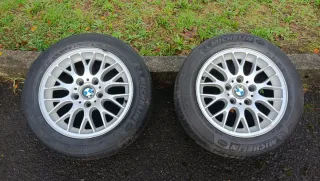 Juego de llantas BBS RZ 469 de 16 pulgadas y 8 de ancho. Originales de BMW con los neumáticos delanteros nuevos y traseros en buen estado - Centro con logo BMW.