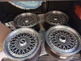 Juego de llantas de 16 pulgadas con un diseño clásico tipo BBS. - Diseño de radios en forma de malla. - Patrón de pernos 4x100. -No an rodado se montaron para proyecto i se a dejado -Doble media 8 (ET 25)delanteras /9traseras(ET20)