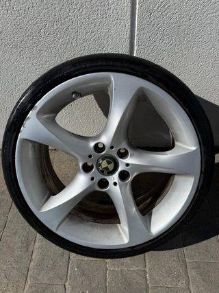 Juego de llantas estilo BBS con anclaje 5x120 en 19 pulgadas para BMW. Doble medida delanteras 8.5 y traseras 9.5 con et20 las 4. Neumáticos delanteros 225/35/19 al 80% y traseros para cambiar. A partir de 140 hay una llanta que vibra un poco, puede que sea que se ha caído algún plomo por qué en su día equilibraron a 0. Están tal y como se ven en las fotos están sacadas de hoy. SOLO VENTA NO CAMBIOS!!!