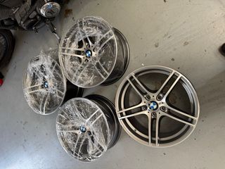 Juego de llantas BMW de 19 pulgadas diseño BBS restyling Originales con neumáticos. 2x 8j ET37 (235/35/R19) 2x 9j ET39 (255/30/R19) - Diseño deportivo. - Compatibles con modelos BMW. - Medida 19 pulgadas. Se venden con neumáticos. Ruedas traseras al 100% recién cambiadas y delanteras al 70% Están a falta de pintar como se pueden ver en las fotos por lo de más bien. No votan ni tienen grietas ni nada por el estilo, tan poco se an reparado nunca. Cambio por llantas en 19" de BMW que me interesen. #llantasbmw #bmw #serie3 #bbs #19" #e46 #e90 #e92 #e93 #e81