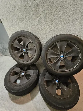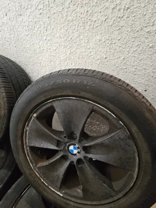 Juego de 4 llantas con neumáticos para BMW Serie 3 E90 (16") - Medida de neumático: 225/50 R16. -Llantas pintadas, con algunos daños visibles (ver fotos) - Neumáticos con diferente nivel de uso, aún funcionales -NEGOCIABLE