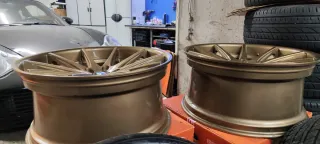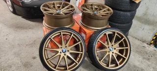 Juego de llantas de aleación para BMW en acabado dorado. Llantas nuevas solo probadas en medidas 22X10'5 et 42traseras cóncavas 22X9. Et 35 delanteras Neumáticos nuevos en medidas 275-25/22 Michelin 245-30/22 lavingator Las llantas son marca avensus - Tamaño: 22 pulgadas. - Patrón de pernos: 5x120.