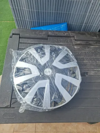 Se vende 1 tapacubos universales para llantas de 15 pulgadas. Dale un nuevo look a tu coche. Está rozado del uso pero se sujeta perfectamente. - Diseño deportivo. - Material resistente. - Fácil instalación. - Color gris plata.