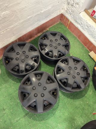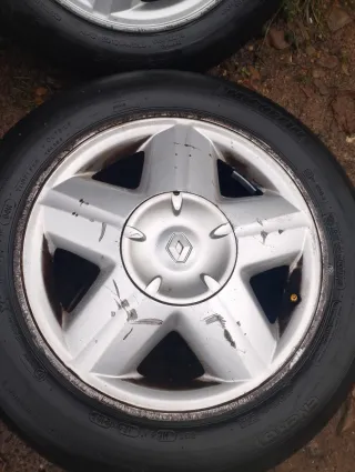 Juego de 4 llantas Renault 4 tornillos 15 - Diámetro: 15 pulgadas. - 4x100 2 neumáticos bien, pero de distinto dibujo y los otros 2 están más bien para cambiar válidas para Kangoo, Clio, Megane, dancia y etc _precio por las 4