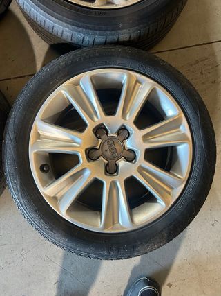 Juego de 4 llantas de aleación de 15 pulgadas para Audi A1. - Diseño multirradio plateado. - Logo de Audi en el centro. Las llantas en perfecto estado, los neumáticos no con mucha vida. Agujeros 5x100 Son compatibles con Polo, Favia, Ibiza, Córdoba, Golf 4, Octavia 1, Leon 1, Toledo 2