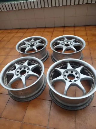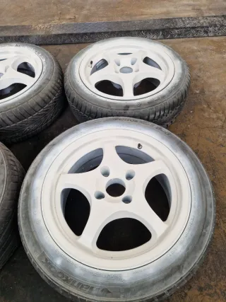 Juego de 4 llantas TSW de 15 pulgadas. No estan dobladas ni golpes fuertes algun rocecillo que otro de aparcar por lo demas en buen estado,tengo las tapas del centro tambien - Medida: 15x6.5 - Anclaje: 4x114.3 - ET: 25 3 gomas se pueden aprovechar, 1 de ellas esta rajada por dentro y hay que cambiarla PG:Intercooler,swap,sparco,omp,recaro sti,evo,wrx,brembo,nismo,gtz,compomotive,speedline,m3,bbs,coswhorth,nissan,sr20det,ca18det,ap racing,copa turbo,m3,m5,bbs,japan racing,rota grid,rondell,drif,hidráulico,semi arco,convadas,styling,1jz gte, 2jz,k24,s13,s14,200sx,skyline,cosmis,bride,takata,pro track,gtr,gsi,gti,hks,g ready,acl,arp