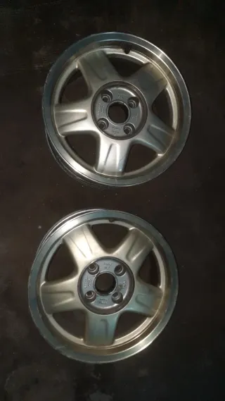 Juego de llantas de aleación para Ford Fiesta. - Tamaño de 15 pulgadas. - Diseño de 5 radios dobles. - Logo de Ford en el centro.