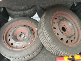 Se venden 4 llantas y 7 neumáticos de 15 pulgadas. - Llantas de 15 pulgadas. - Neumáticos 195/55 - Compatibles con modelos de PSA Los neumáticos presentan bastante dibujo pero están algo cuarteados.