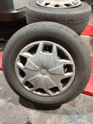 Juego de llantas de 15 pulgadas para Ford Transit, con neumáticos incluidos. Listas para montar. - Llantas de 15 pulgadas. - Neumáticos para Ford Transit. - Con tapacubos ford -neumaticos mas o menos a la mitad de vida - medida 225/65/15