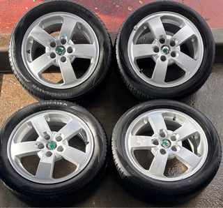 Juego de cuatro llantas de aleación de 16 pulgadas para Skoda Fabia Diseño de 5 radios - Diámetro 6x15” - Tornilleria 5x100 - ET43 - Diseño: 5 radios. - Compatibles con Skoda Fabia Roomster Seat Cordoba Ibiza VW Polo Ibiza Neumáticos de regalo 195/50 aprovechables