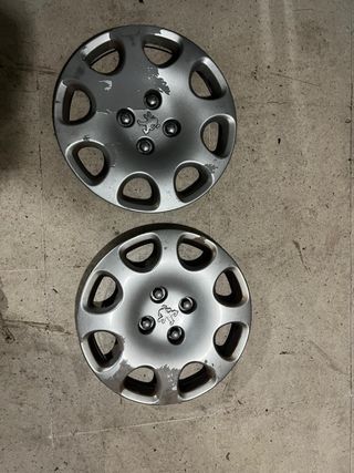 Se venden dos tapacubos originales de Peugeot para llantas de 15 pulgadas. - Diseño deportivo con 7 radios. - Logo de Peugeot en el centro. - Color gris plateado.