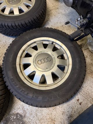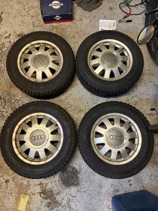 Juego de 4 llantas de 15 pulgadas con anclaje 5x112, provenientes de un Audi A4 B5. Neumáticos de nieve prácticamente nuevos, se entregan con dos neumáticos los otros dos me los quedo yo. - Diámetro: 15 pulgadas. - Patrón de pernos: 5x112.