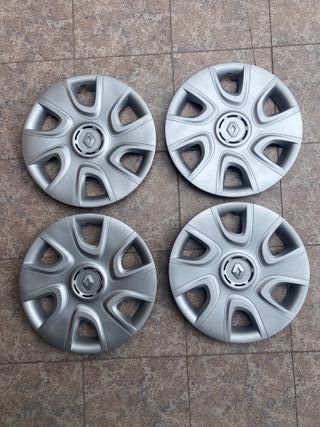Set de 4 tapacubos plateados para Renault con llanta R15. Diseño moderno y elegante. - Compatibles con llantas de 15 pulgadas. - Logo de Renault en el centro. - Fabricados en plástico resistente.