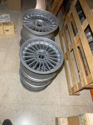 Juego de 4 llantas de aleación para BMW E30. - Diseño multirradio. - Acabado plateado. - Tornillería 4x100 - 15 pulgadas et24 7 pulgadas de ancho
