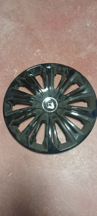 Tapacubos de color negro para llantas Renault de 15 pulgadas. Diseño deportivo y elegante. - Color: Negro - Diámetro: 15 pulgadas - Logo Renault central -Prácticamente nuevo -1 unidad
