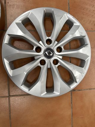 Juego de tapacubos originales de 15 pulgadas. - Diseño de 10 radios. - Logo de Renault en el centro. - Color plateado. Puesto 1 día (en casa Renault) y quitado por poner llantas aluminio Precio X los 4, no se venden sueltos