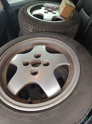 Juego de llantas Speedline de 15 pulgadas, originales para Renault 21 Txi. Se venden con neumáticos,estaban montadas en un Megane 1 neumáticos prácticamente nuevos Pintadas hace 8 años - 185 55 15 82 H/V - años 2020/24 - Diseño deportivo Speedline. - Tamaño de 15 pulgadas. - 4x100 - 16 tornillos y 4 antirrobos