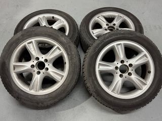 Se venden 4 llantas de 16 pulgadas con neumáticos al 90 %, de un Mercedes E200. - Medida del neumático: 225/55 R16. - Diámetro de la llanta: 16 pulgadas. Las delanteras prácticamente sin ninguna marca, las 2 posteriores deberían pulir algún bordillazo.