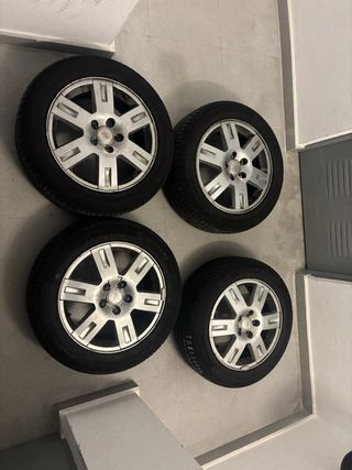 Juego de llantas de 16 pulgadas con un patrón de pernos de 5x108. - Diseño de 5 radios. - Acabado plateado. -IMPORTANTE: DOS LLANTAS VENDRÍAN SIN NEUMÁTICOS, LAS OTRAS DOS ESTARÍAN PARA CAMBIAR. PRECIO NEGOCIABLE.