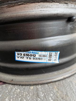 Juego de 4 llantas de chapa originales para Volkswagen T5. Están en buen estado y listas para ser instaladas. - llantas en 16 pulgadas - tortilleros 5x112 - Compatibles con Volkswagen T5. - Se pueden ver en La Bañeza pero también se pueden recoger en Gijón