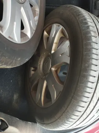 Juego de llantas originales de aleación para Citroën. Vienen de un C4 de primera generación pero valen para cualquier vehículo PSA si quieres, cambiando el tapabuje. Escucho ofertas Están en bastante buen estado Dos llantas vienen con neumáticos Continental al 70% Los otros dos todavía tienen rodaje pero están algo cuarteados. Preguntar sin compromiso. Para este producto no hago envíos, solo venta en persona. Pueden venir a verse sin compromiso - Tamaño: 16 pulgadas. - Diseño de 7 radios. - Acabado plateado.