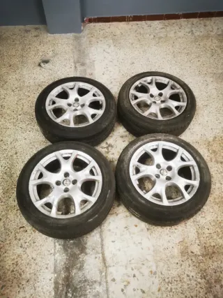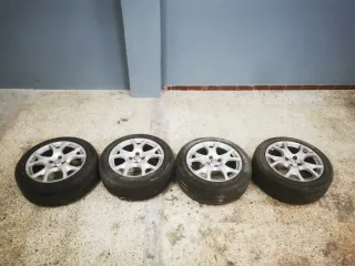 Juego de llantas de aleación de 16 pulgadas para Seat. - Neumaticos puestos hace 2 semanas - 5x112 - ET50 - Diseño de 5 radios dobles. - Acabado plateado. - Algun rasguño.