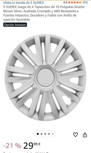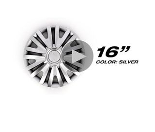 Juego de tapacubos plateados de 16 pulgadas. - Diseño de 5 radios. - Acabado brillante.