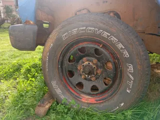 Juego de llantas Toyota de 215/80/16,se venden tal cual están,solo una goma medianamente bien las otras dos no valen nada.no se envían,no se el peso,el que las quieras si quiere mandar repartidor a su cuenta.se venden las 4 juntas en ese precio.estan en Liebana Cantabria. opción de regalo de tres cubiertas,estan desgastadas pero para un apuro valen - Llantas de aleación. - Diseño de 6 radios