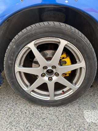 Juego de llantas Artec de 17 pulgadas. - Diseño deportivo de 7 radios. - Acabado plateado. - Tornillería visible. -2 Neumaticos nuevos -2 neumaticos 90%