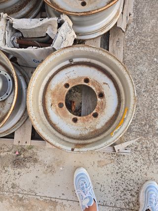 Juego de llantas de aluminio de 14 pulgadas usadas. Están algo desgastadas, con marcas de uso. Medidas en las fotos 39 cm diámetro, 17,5 cm de ancho y 6 cm de buje. Dos de ellas tienen un ligero golpe reparable, se indica en la foto con un círculo rojo. No marear, está todo indicado en las fotos y el precio no es negociable. Sólo recogida en persona. -Tornillería: 4x110 mm - Medida: 14 pulgadas - Material: Aluminio - Se venden en conjunto (4 unidades)