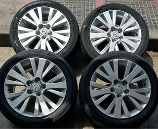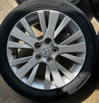 Se vende juego de 4 llantas de 17 pulgadas originales Mazda 6 Están en buen estado. - Modelo: Mazda 6 Atenza - Diámetro: 7x17” - ET60 - Tornillos: 5x114,3 - Buje 67,1 Neumaticos DE REGALO 215-50 R17 tres de ellos aprovechables uno para reemplazar por una raja Kia Cee’d Hyundai I30