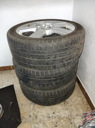 Vendo pack de 4 llantas de aleación originales con gomas Pirelli de SEAT de 17 pulgadas, fabricadas en Austria. Son las llantas de 5 radios dobles que venían de serie en modelos como el SEAT León (MK2) y Altea. Especificaciones técnicas de la llanta (ver fotos): Referencia original: 1P0 601 025 C Medidas: 7J x 17 H2 Offset (ET): 54 Anclaje: 5x112 (estándar para la mayoría del grupo VAG: VW, Audi, Skoda) Material: AlSi7Mg (Aleación de alta resistencia) EN muy buen estado #Llantas #SEAT #17pulgadas #SeatLeon #SeatAltea #VAG #5x112 #Pirelli #Ruedas #RecambiosCoche #LlantasOriginales