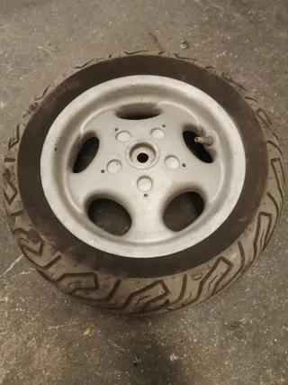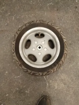 Rueda delantera de Vespa ET2. - Llanta de aleación. - Neumático con dibujo.