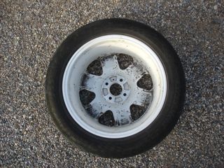 1 llanta renault laguna de 16 pulgadas en aluminio, de 4 tornillos 6,5J16 CH4 50 era la de recambio de ahi su buen estado aries regalo el neumatico 205/55R16 ya que solo seria para utilizar en caso de emergencia segun el criterio del comprador